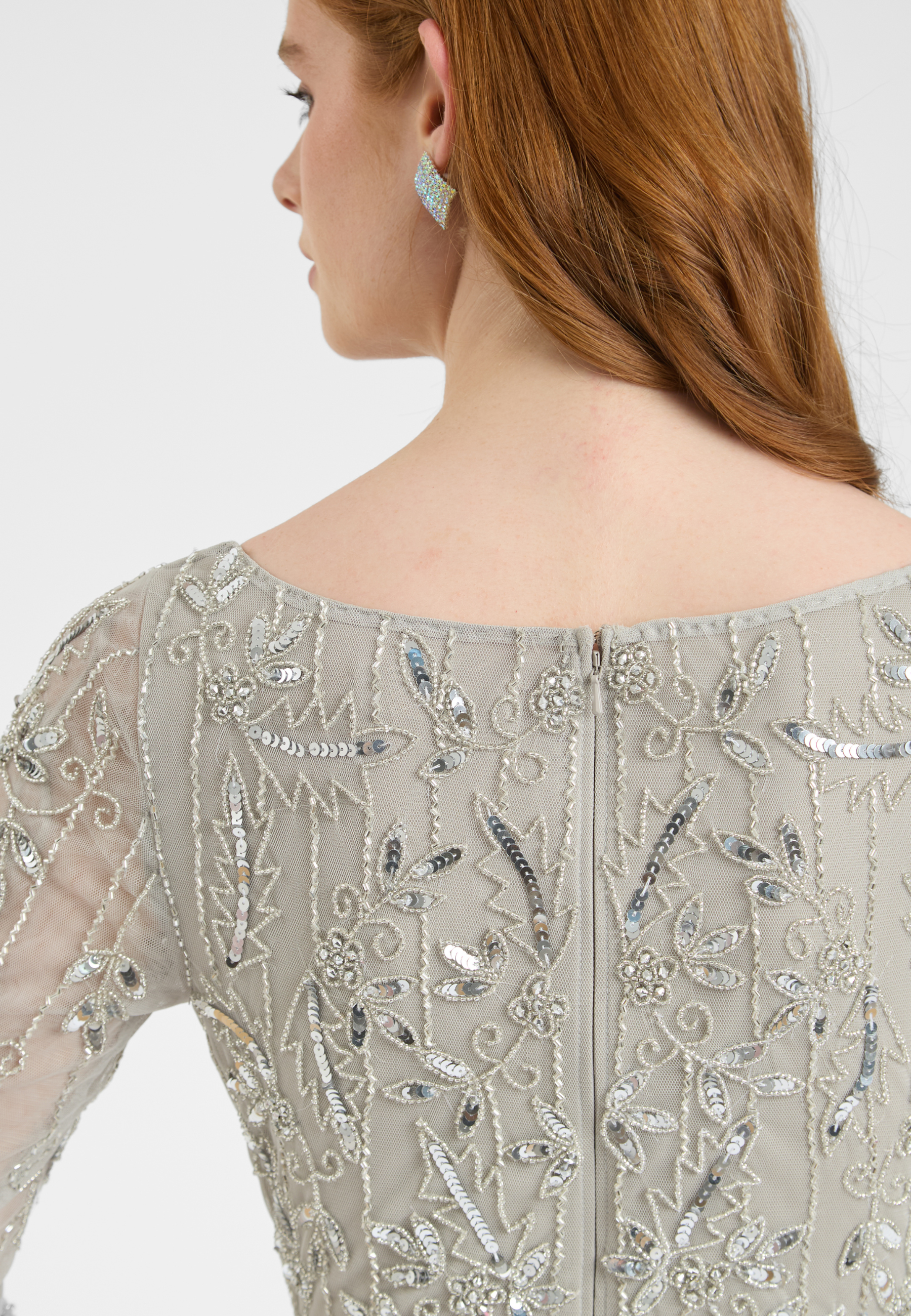 Capture timeless elegance in our light grey sequin maxi dress. Ideal for formal events, weddings, or night-outs, this dress features a soft green hue with shimmering sequin accents, offering a flattering silhouette. Perfect for those seeking a balance of sophistication and subtle glamour.