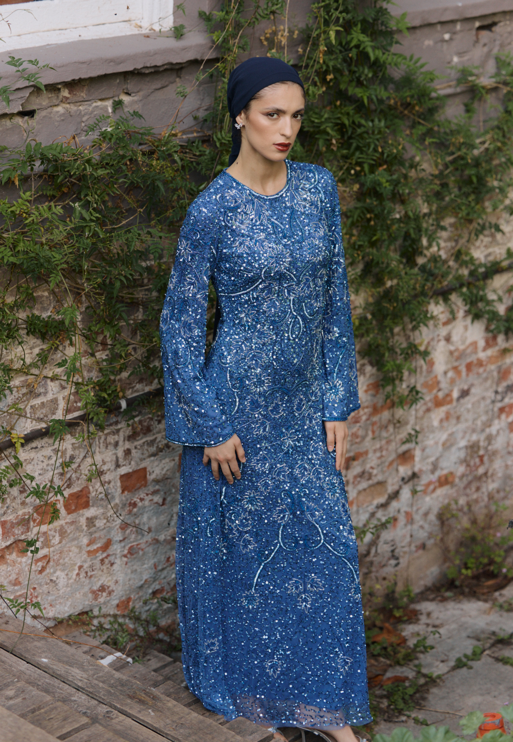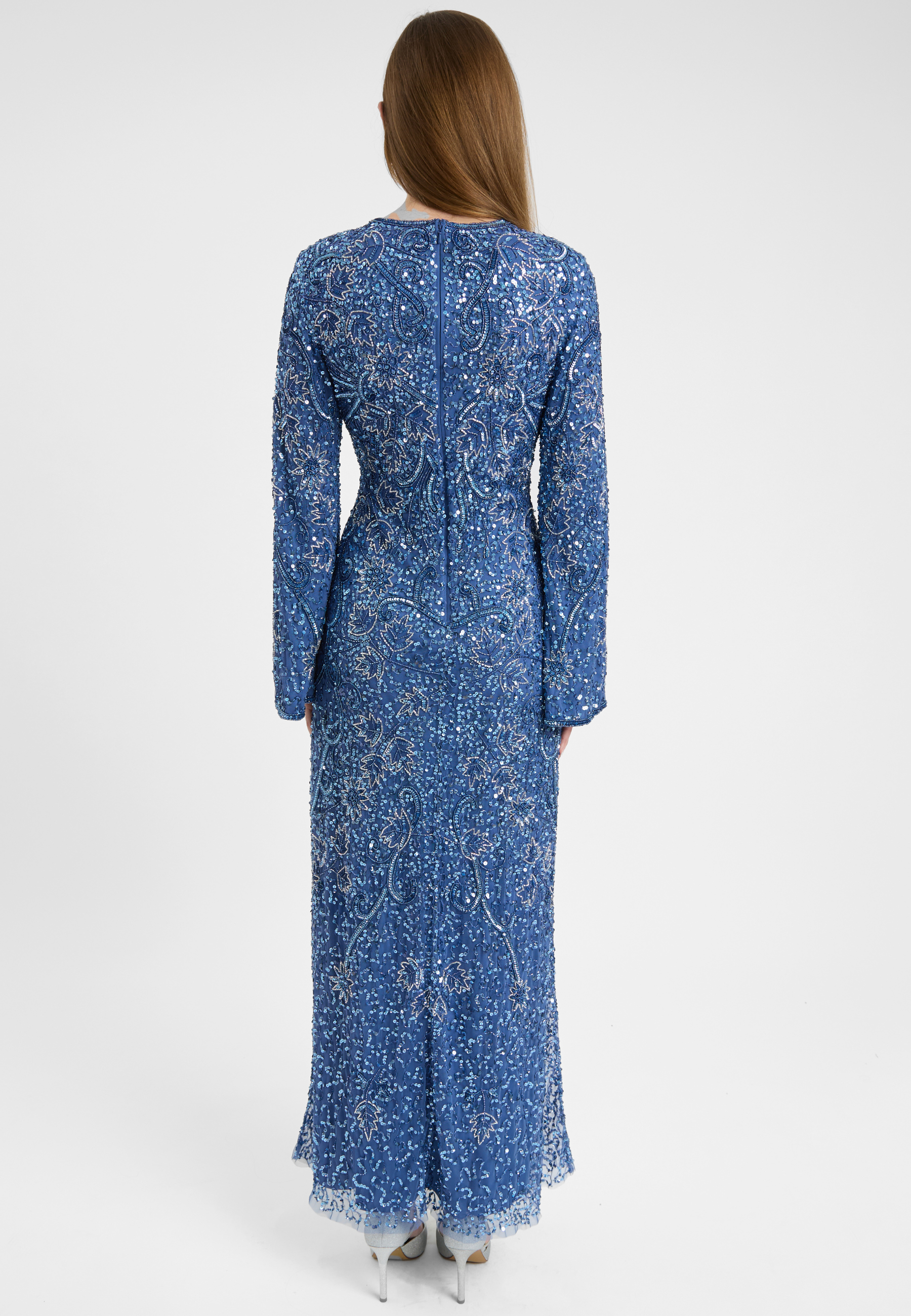 The Aliye Embellished Sequin Maxi Dress from MARYISA is a harmonious blend of timeless sophistication and contemporary design. Crafted for the modern woman who values modesty without compromising on style, this dress is perfect for weddings, formal gatherings, and other special occasions.