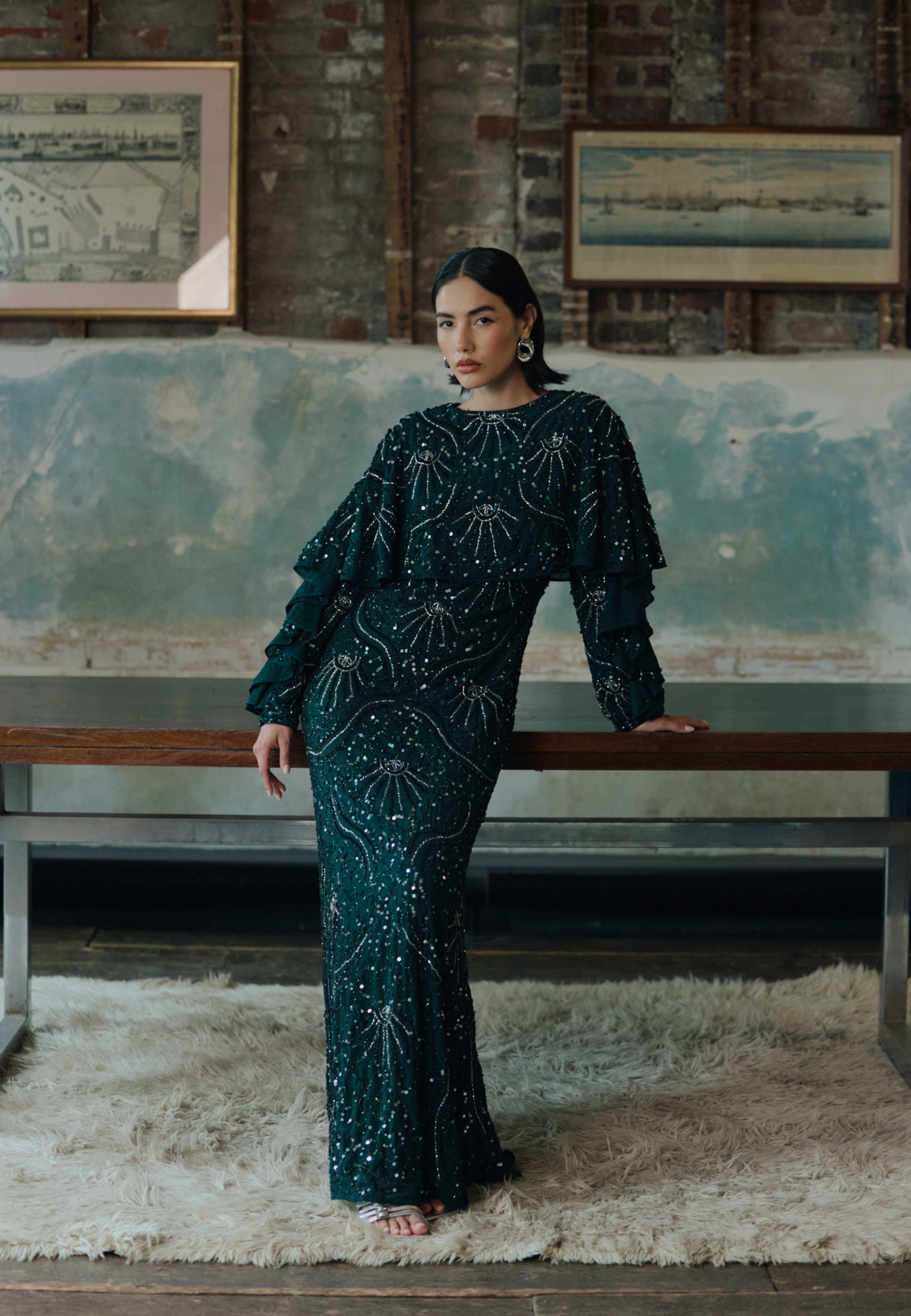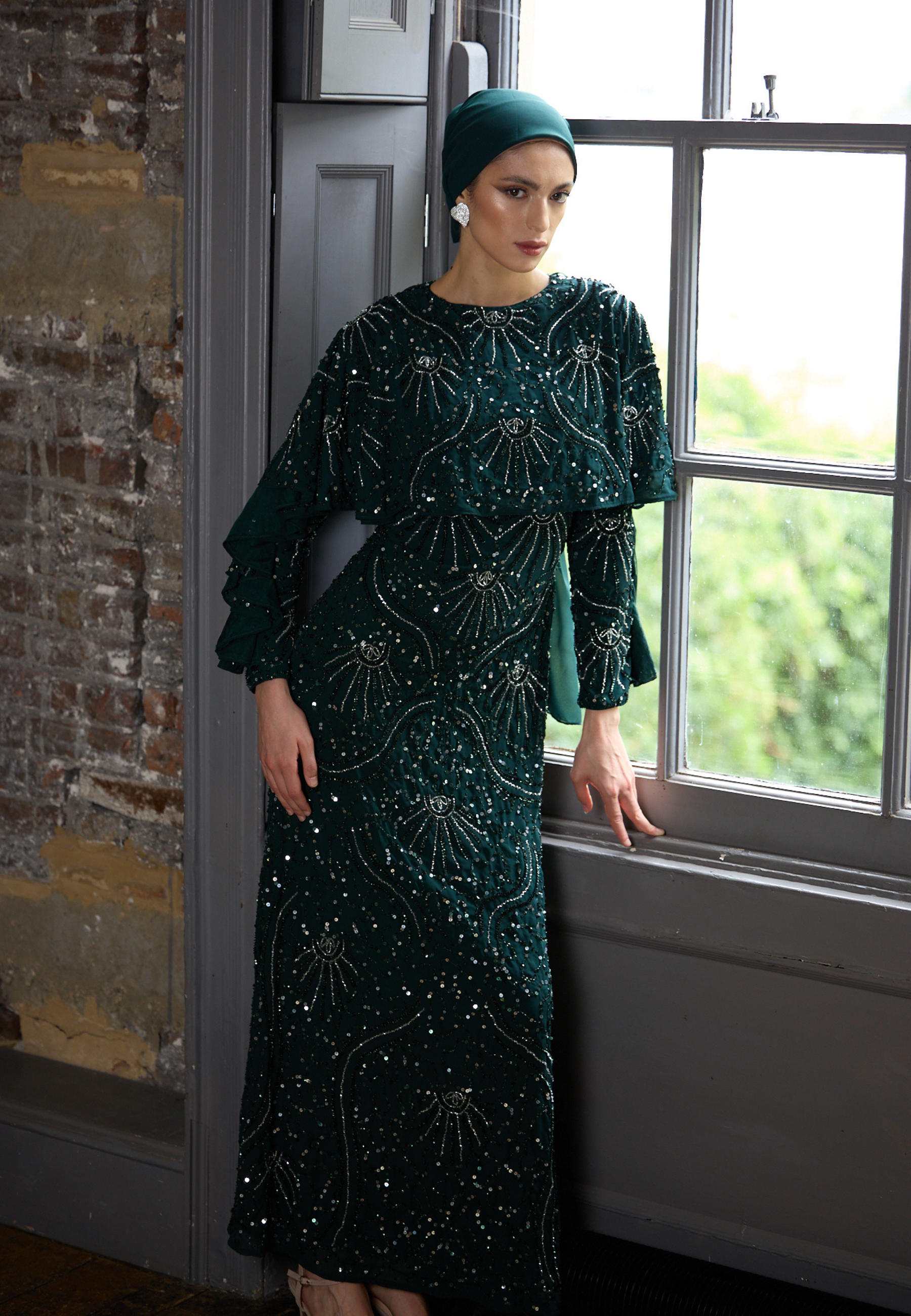 Elin Modest Embellished Sequin Maxi Dress | MTZ250406