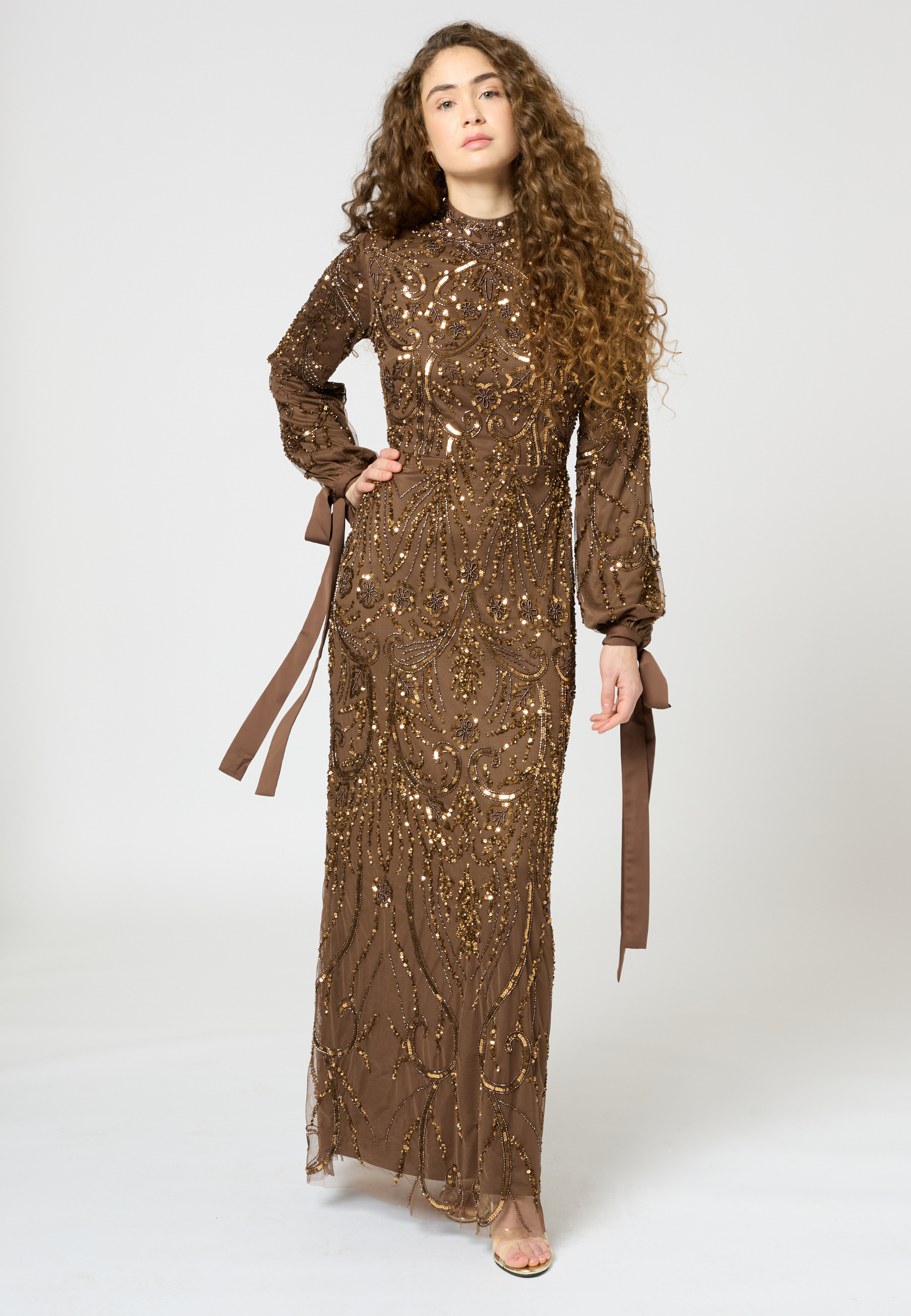 Nayal Modest Embellished Sequin Maxi Dress | MTZ250403