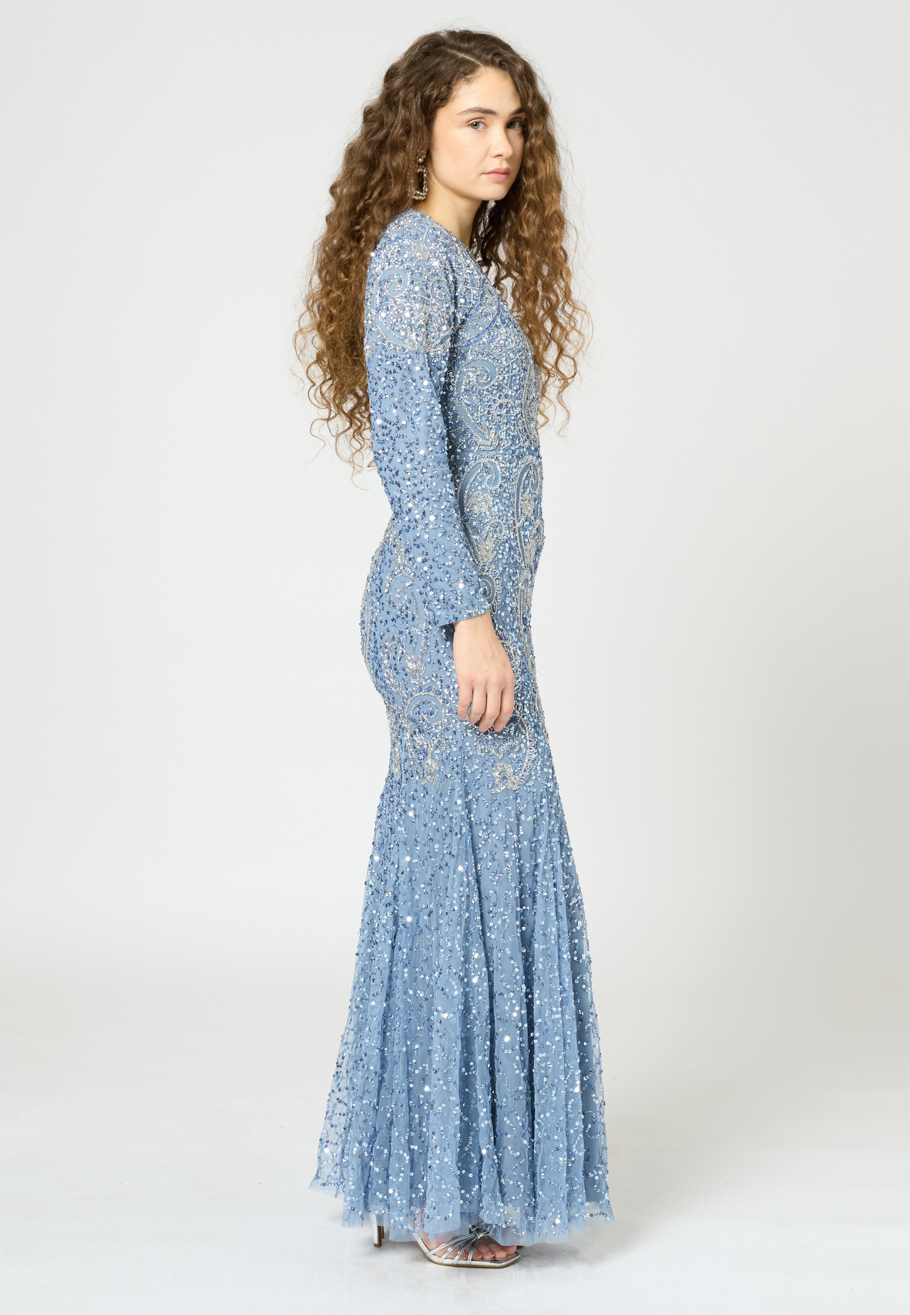 This modest sequin dress offers an ethereal shimmer with a structured fit. Perfect for those who want to sparkle without sacrificing their modest style. Perfect for a formal evening, its delicate sequins bring a soft but dazzling shine to your look.