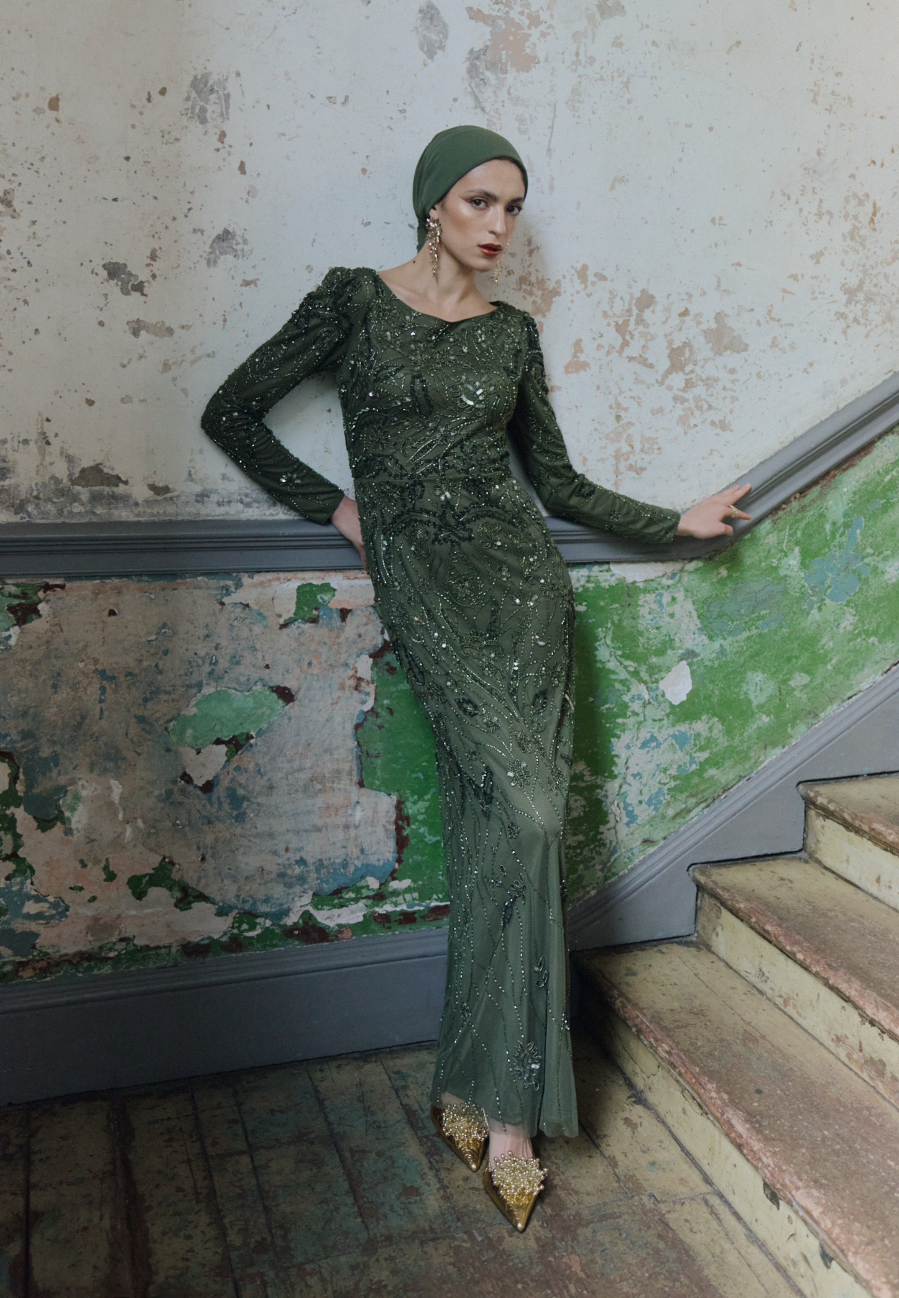 Unveil timeless sophistication with the Tiana Ziya Sequin Maxi Dress by MARYISA. Designed for the modern woman who values modesty without compromising on style, this dress is perfect for weddings, formal gatherings, or any special occasion.